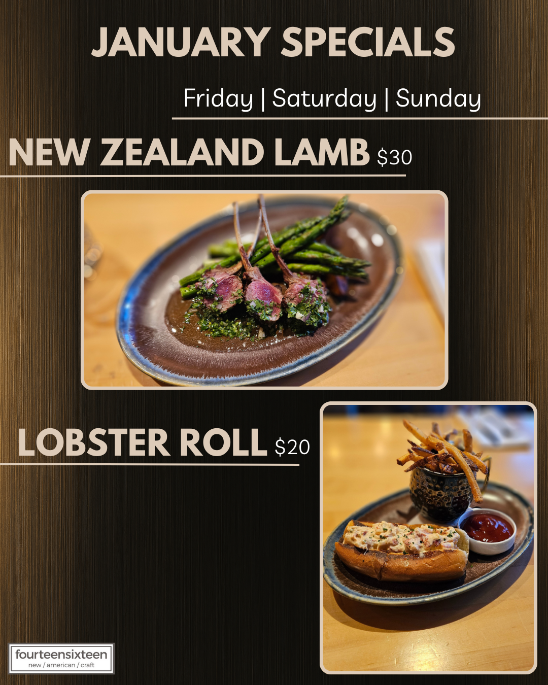 special dishes for the weekend, while supplies last.